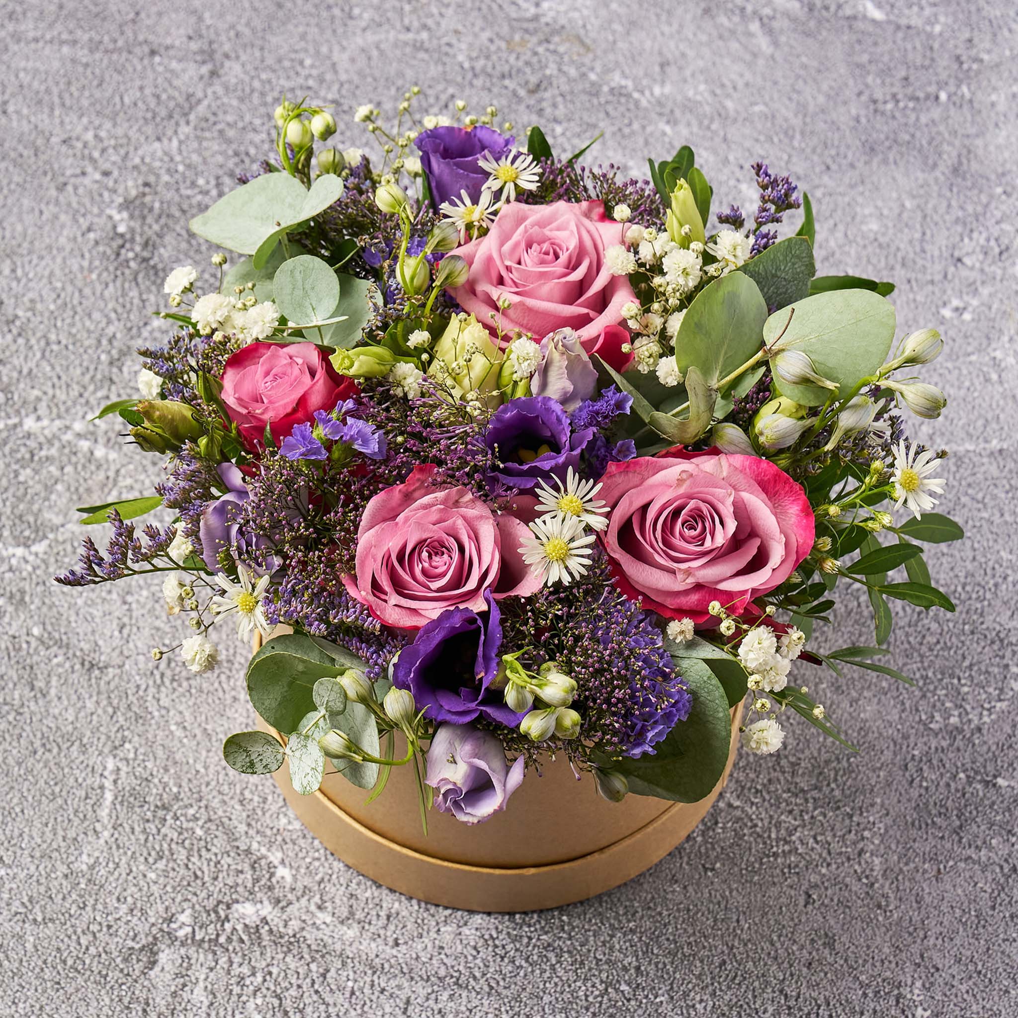 Vores Hatteæske Den Mørke er en sofistikeret og stemningsfuld dekoration, fyldt med mørke, dybe blomster i elegante nuancer. Præsenteret i en stilfuld hatteæske skaber buketten et dramatisk og luksuriøst udtryk. Den tilfører dybde, varme og en tidløs elegance til ethvert rum eller fungerer som en imponerende gave.