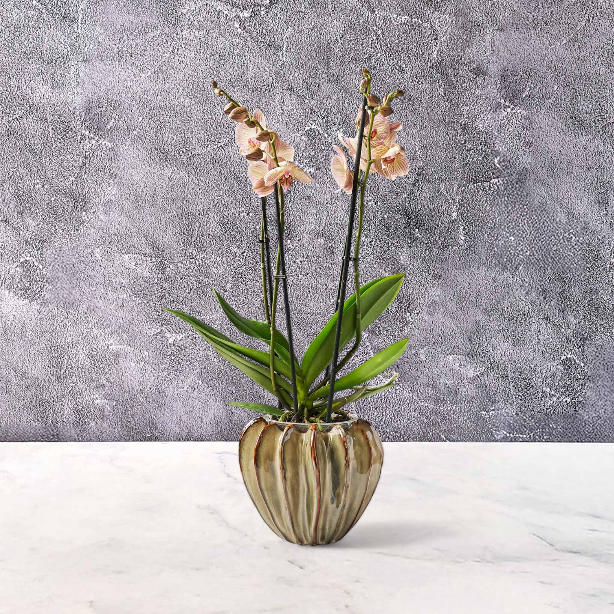 Vanilla Blush kombinerer delikate cremefarver og sarte rosa toner for at skabe en mild og varm atmosfære. En smuk, rolig og elegant orkidé, der løfter indretningen med sin naturlige skønhed.